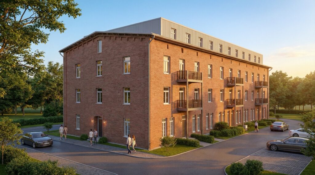 Our core focus lies in the meticulous revitalization and conversion of the former sugar factory’s landmarked administrative building. This process will yield 32 premium residential units, seamlessly blending the historical charm of the structure with state-of-the-art living comfort. Furthermore, 32 dedicated parking spaces will be established to enhance tenant convenience and the overall property value.