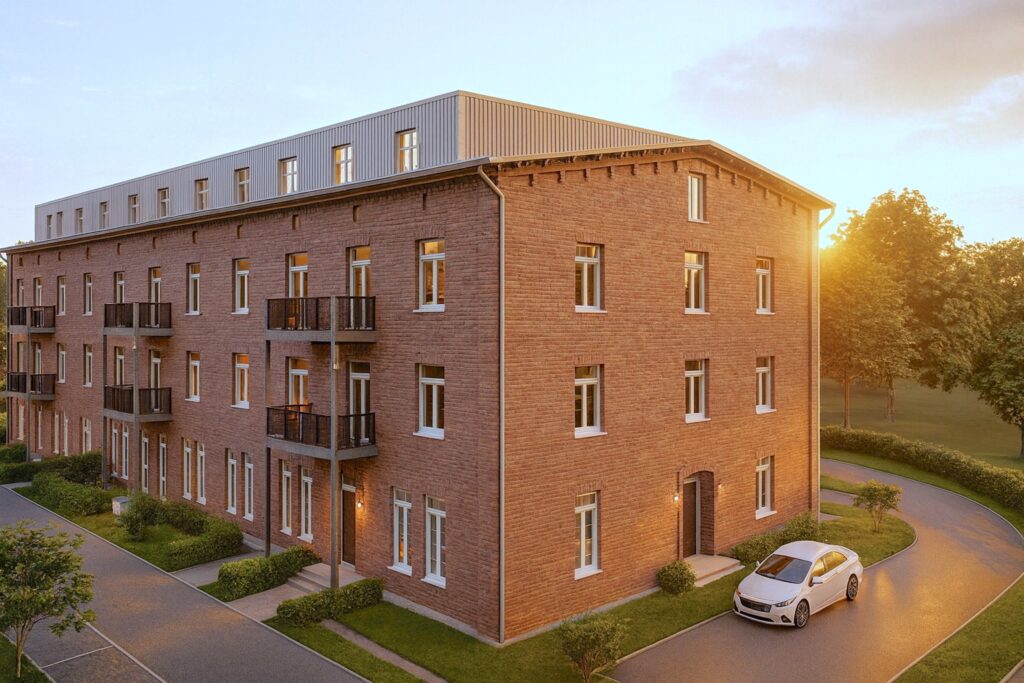 Die Entwicklung konzentriert sich auf die behutsame Sanierung und Umnutzung des denkmalgeschützten Bürohauses der ehemaligen Zuckerfabrik. Hier entstehen 32 hochwertige Wohneinheiten, die den Charme des historischen Gebäudes mit zeitgemäßem Wohnkomfort verbinden. Zusätzlich werden 32 PKW-Stellplätze geschaffen, um den Bedürfnissen der Bewohner gerecht zu werden. Die Sanierung erfolgt unter strengen Auflagen des Denkmalschutzes, um die historische Bausubstanz zu erhalten und gleichzeitig energetische Standards zu erfüllen.